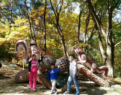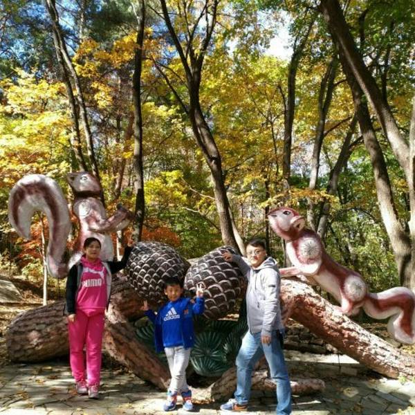 门口不知道为什么,一米四以上小孩都全票,孩子刚过一米四,正常别的景区应该是半票的,也买的全票,总不能大老远来了不进去吧。还有就是孩子也就多说一米四三,到他门口一量得一米五了,这钱让他挣得也太宰人了。价格板上分明六十的门票,硬是要七十,美其名曰加十元赠送三个附加项目,分别是恐龙谷、彩虹滑梯、喊泉。恐龙谷还可以,彩虹滑梯没建好呢不能玩,喊泉整了半天就是破鱼塘里放了个感应声波的喷头,人在边上拿着麦克大叫,喷头就喷出水柱来。登山还是很有趣的,建议体格不好的不要从情人谷那边上山,不好走。一定要到山顶,风景很好!