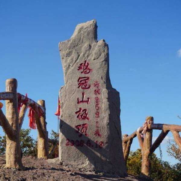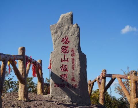 景色一般。典故不少,例如正冠石、抗联遗址、跨冠石。最好的且值得推广的,是生态保护。鸡冠山景区是我国为数不多的没有木质栈道,台阶全是就地取材。爬到顶很累,从停车场到顶峰1400米,我爬了整整一个小时。
