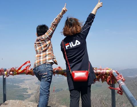 东北此地的地名都很形象,很具有代表性,这个地方也如同其名,吸引许多观光游客前来观赏山势形状,也许是在心中图一种吉祥之意吧,都从不同的角度把背景的“鸡冠”留下。