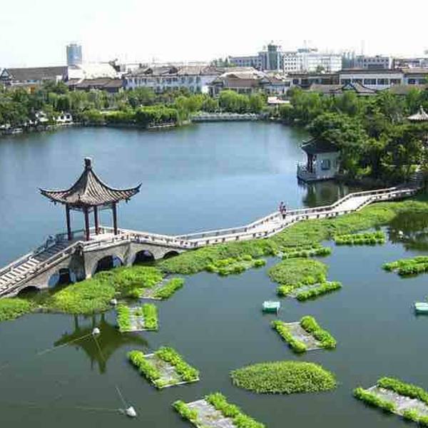 淮安勺湖公园,因形似一把勺子而得名,如今已辟为勺湖公园,湖滨有一四层佛塔,湖光塔影,引人入胜。勺湖先前有十景,现今已恢复的景点有:“胜境长廊”、“勺湖书院”、“飘然一叶”、“金鲤戏波”、“曲桥钟鸣...