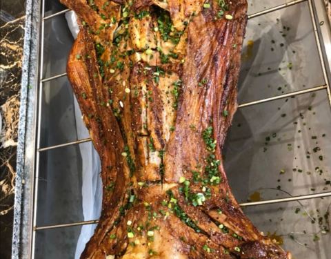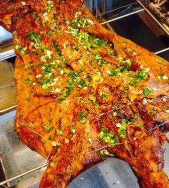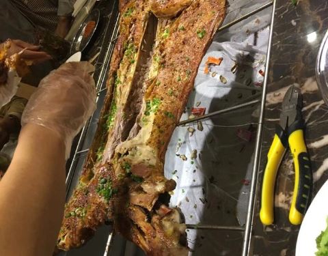 - 烤全羊实在是太爽了,一整只烤羊上来,都有点懵,烤得也特别好,很入味,而且肉很嫩,皮也很脆