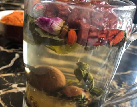 烤全羊是北方地区一种传统风味肉制品,不仅制作过程复杂,配备的烤炉烤架也很有讲究,早至清代,烤全羊宴始终是招待上宾的最好选择。大家烤羊庄为当地享有口碑的烤全羊餐馆,羊肉外表金黄油亮,内部肉绵软鲜嫩, 多瘦肉少脂肪,不肥不腻,膻味小,深得各地食客喜爱。餐前饮上一杯特制的西夏一品八宝茶,清胃清肠清口,为更好的食用和品尝羊肉做准备。
