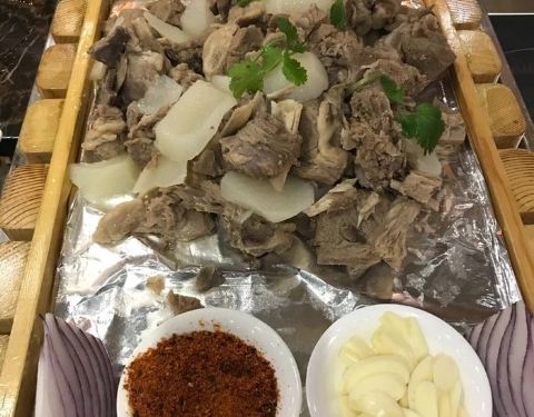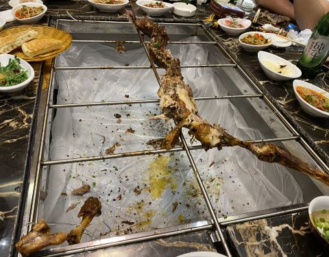 中午去拔草了这个排名第一的饭店,正好单位聚餐,人凑齐了,烤全羊需要提前半天预订,包间也是提前预约的,有两个桌子,一个是吃烤全羊的,一个是吃火锅的,还不错。