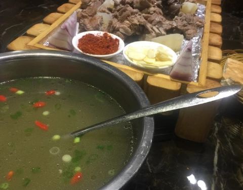 - ...全羊需要提前半天预订,包间也是提前预约的,有两个桌子,一个是吃烤全羊的,一个是吃火锅的,还不错