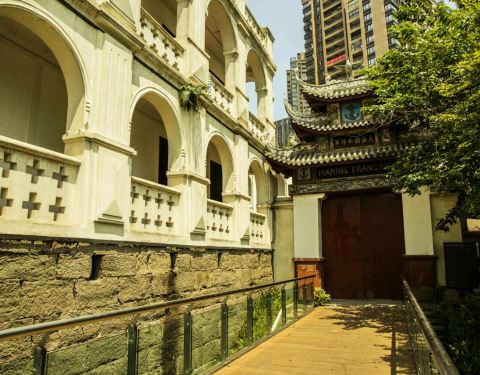 ...欧式的城堡,拱形廊柱,配以飞檐翘角的牌楼式大门,这种中西风格的奇异交融,正是重庆开埠文化的见证水师兵营挽着弹子石老街,欧式的城堡,拱形廊柱,配以飞檐翘角的牌楼式大门,这种中西风格的奇异交融,正是重庆开埠文化的见证