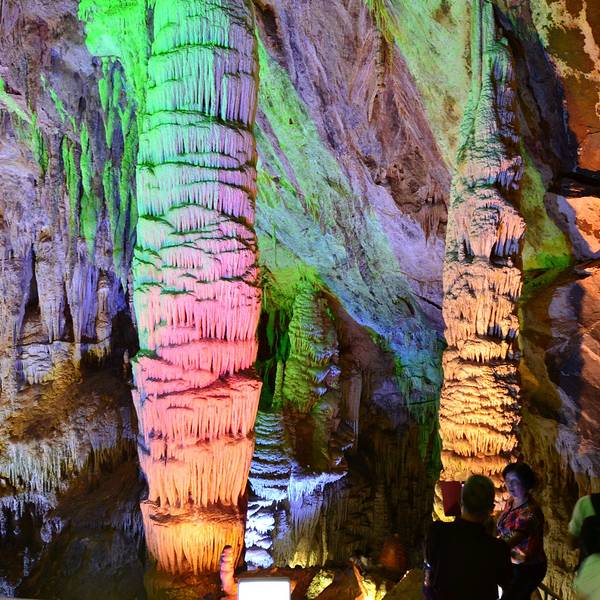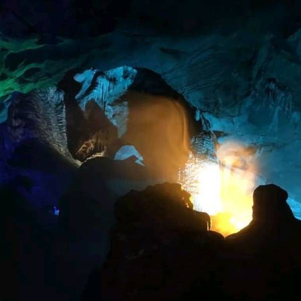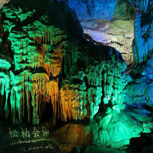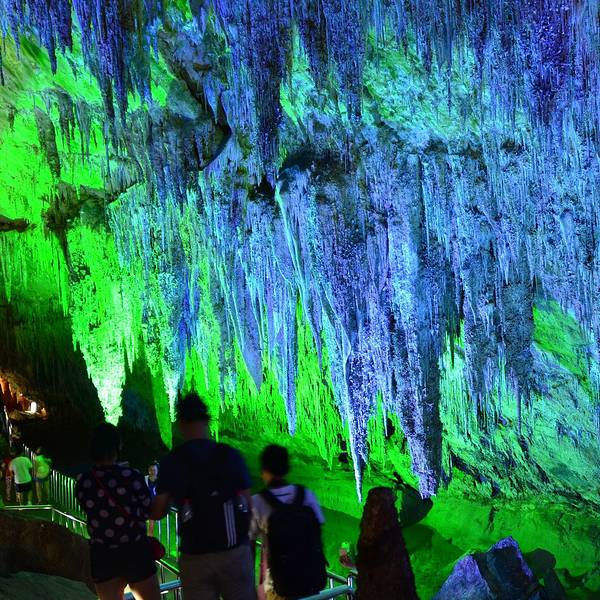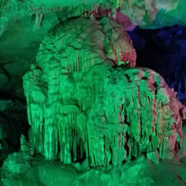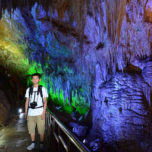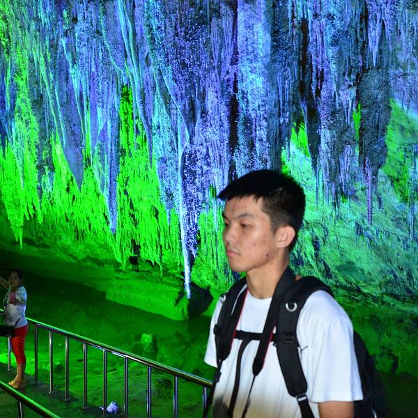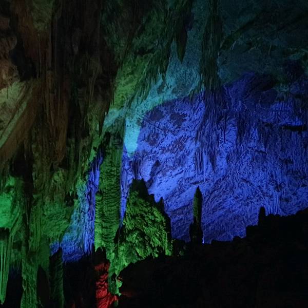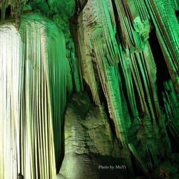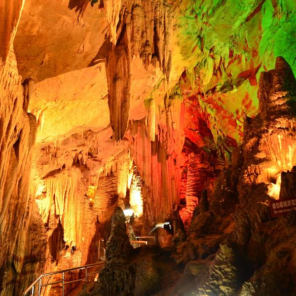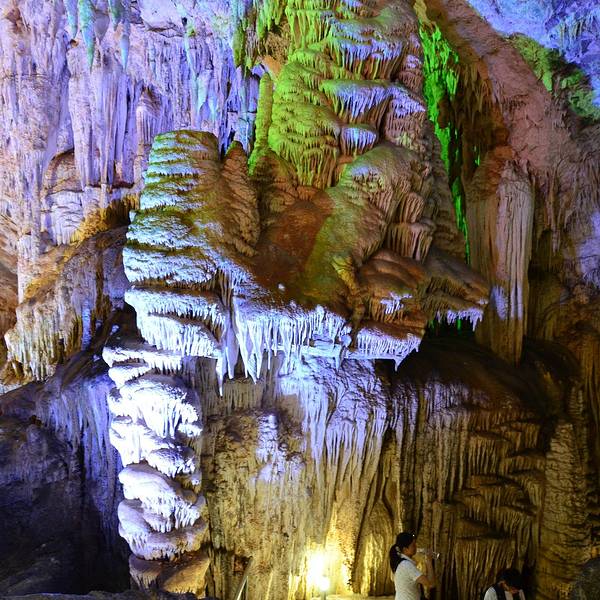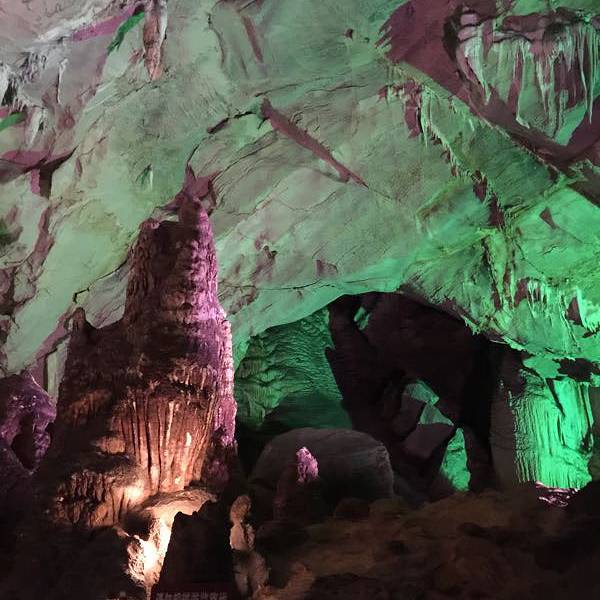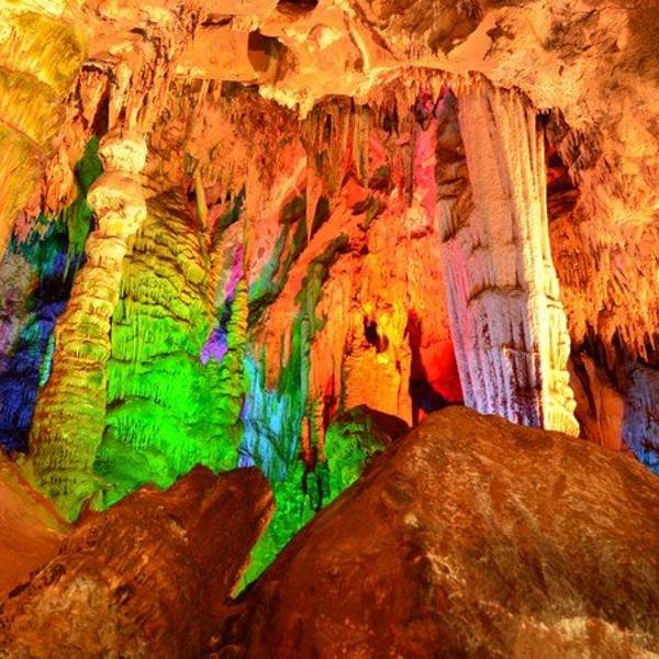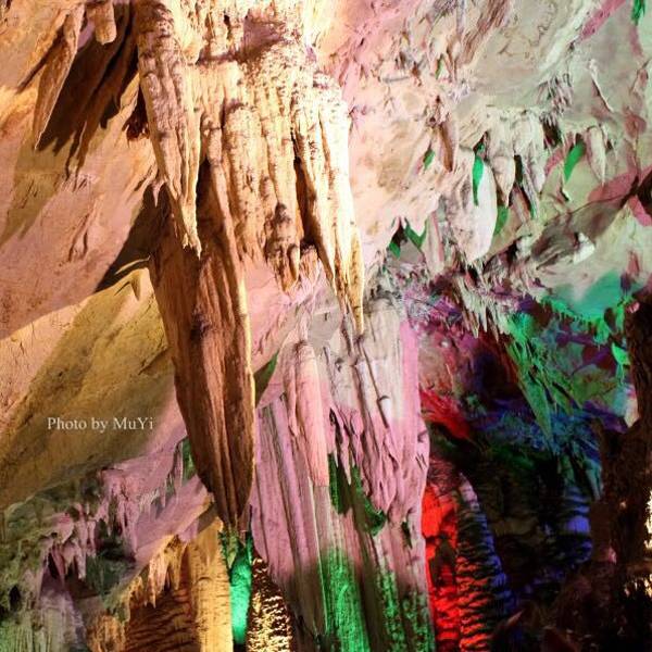 洞内拥有绝大部分类型的钟乳石,灯光下色彩斑斓,辉煌壮丽。