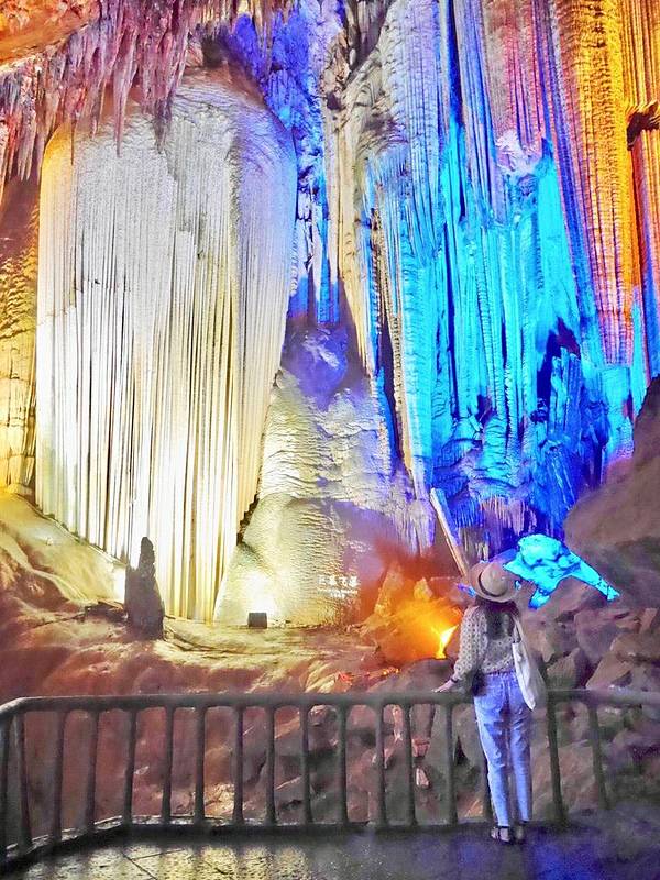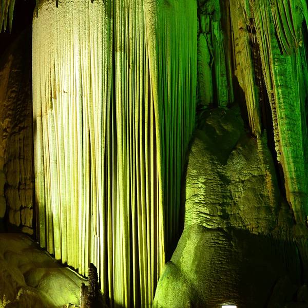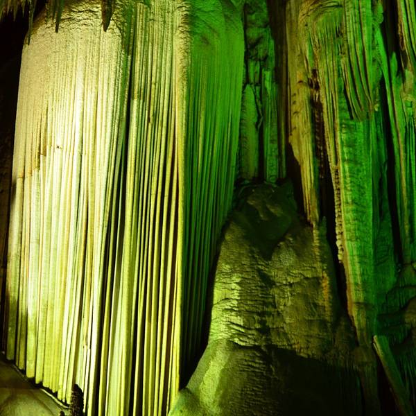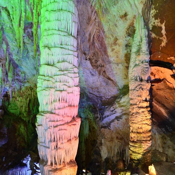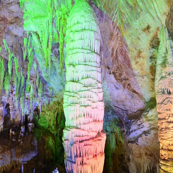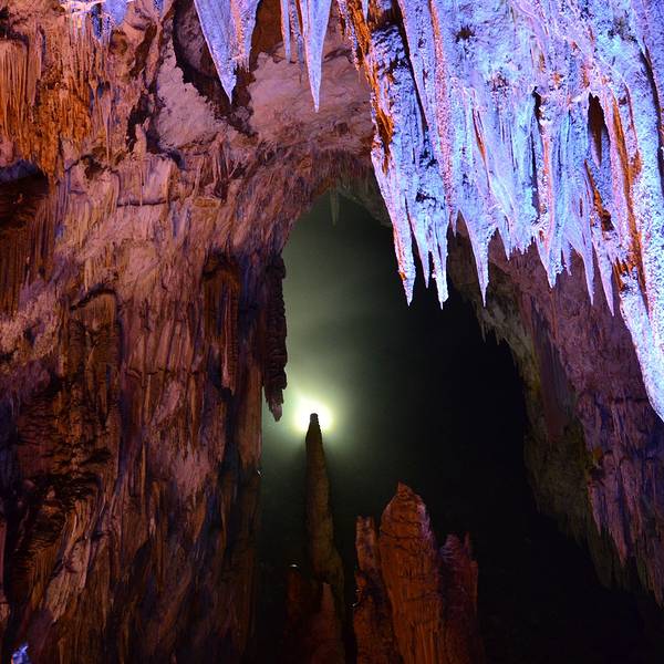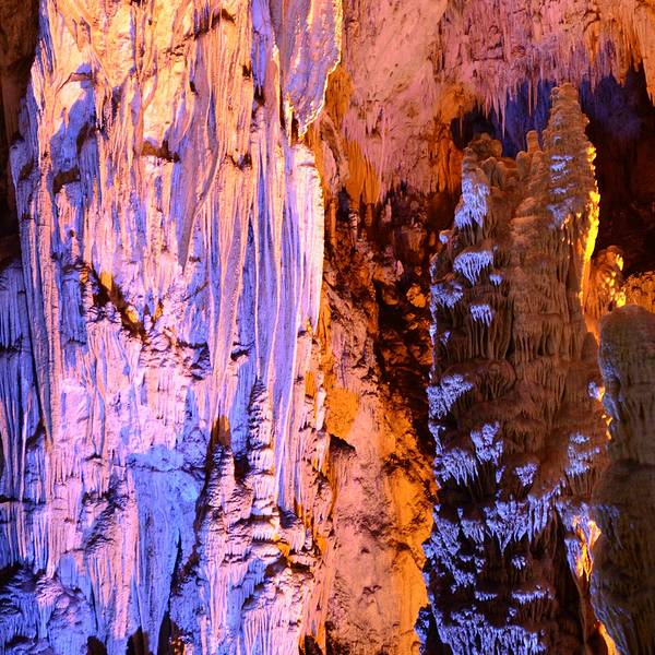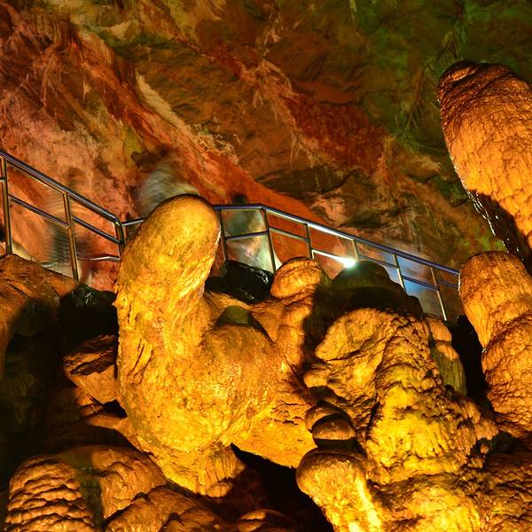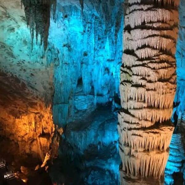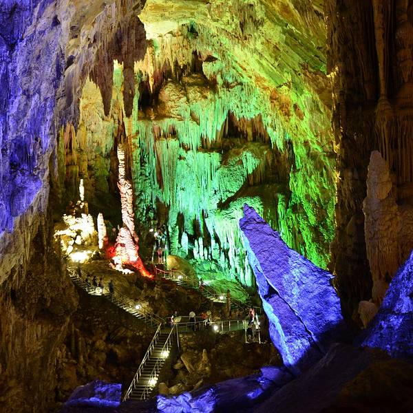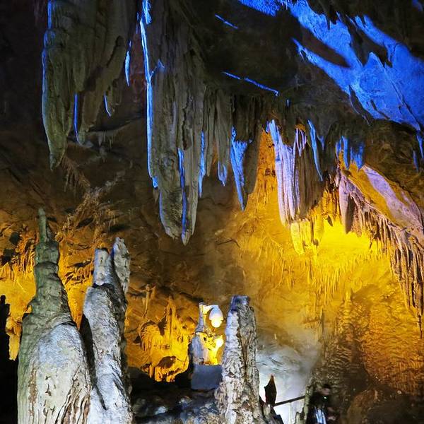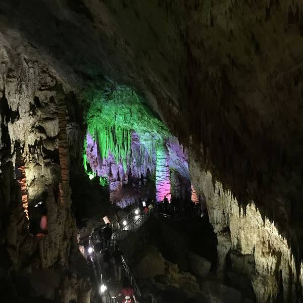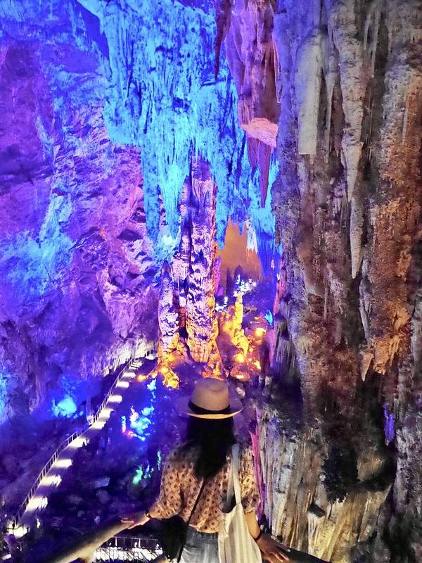 洞内拥有绝大部分类型的钟乳石,灯光下色彩斑斓,辉煌壮丽。