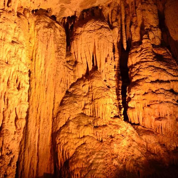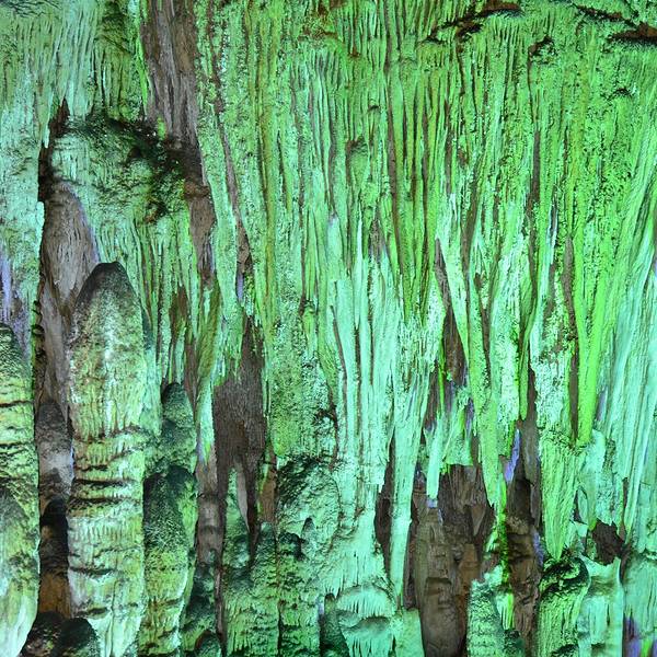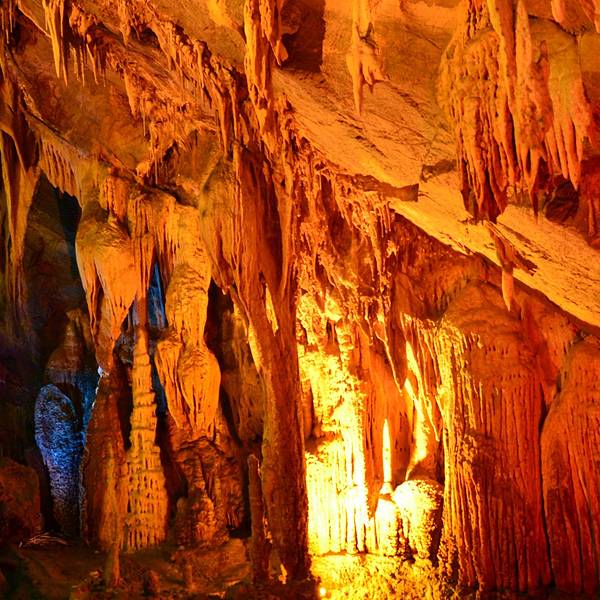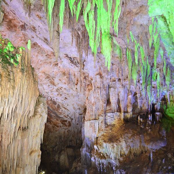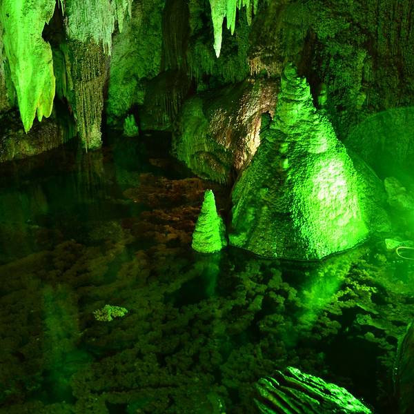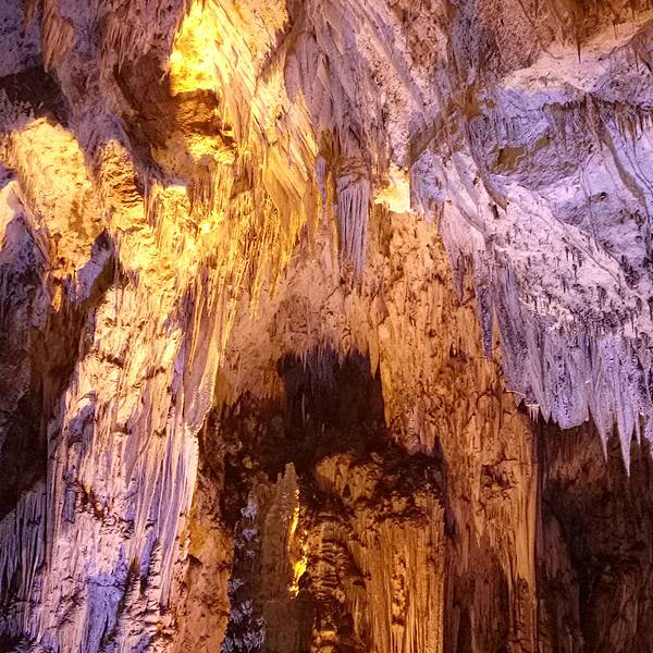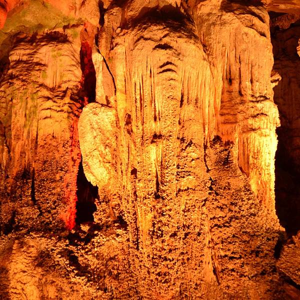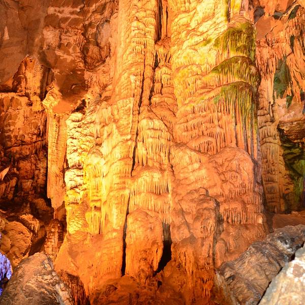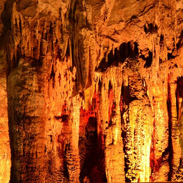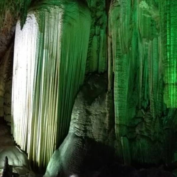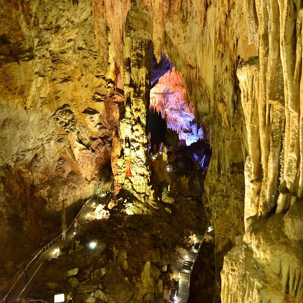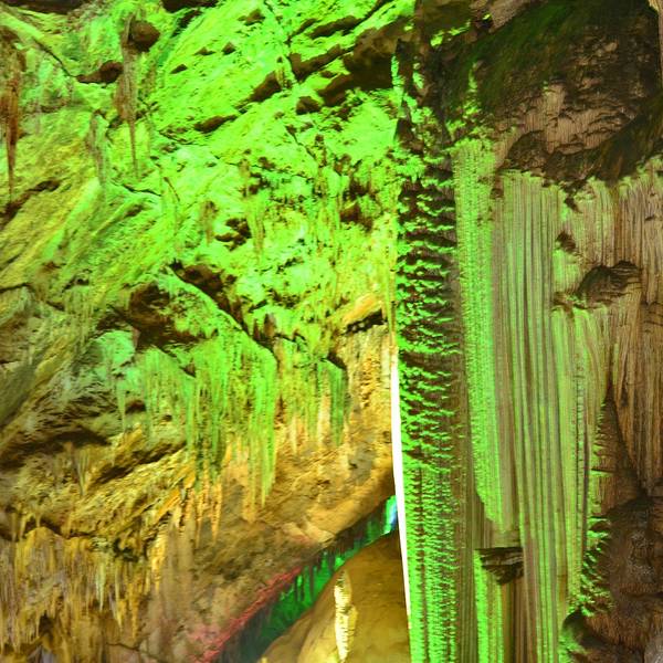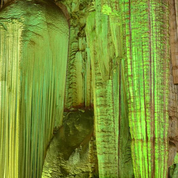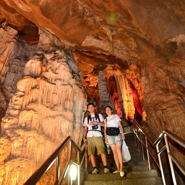 洞内拥有绝大部分类型的钟乳石,灯光下色彩斑斓,辉煌壮丽。