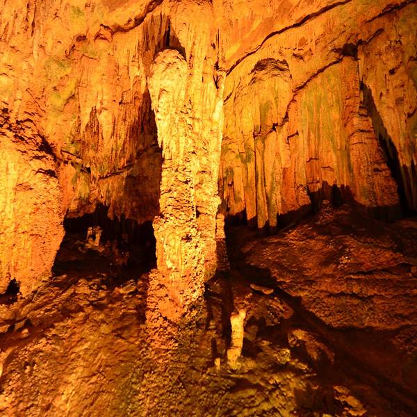 芙蓉洞主洞长2700m,总面积3.7万㎡,其中最为壮观的是“辉煌大厅”,面积达1.1万㎡。还有宽15m、高21m的石瀑和石幕,光洁如玉的棕桐状石笋,粲然如繁星的卷曲石和石花等,其数量之多、形态之美、质地之洁、分布之广,为国内罕见。净水盆池中的红珊瑚和犬牙状的方解石结晶更是珍贵无比。进芙蓉洞游览,使人感受到大自然的神奇造化。