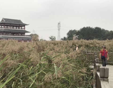 一望无际的芦苇荡,有木质栈道穿行于其中,间或可等阁楼远望,其真可谓心旷神怡,宠辱皆忘