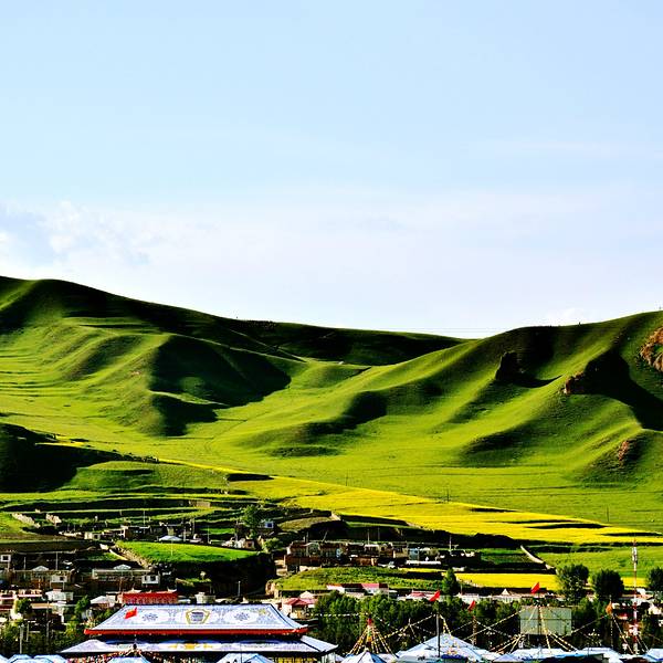 当周草原风景区位于合作市郊南山脚下。时至盛夏,野生花卉在碧绿的草地上竞相开放,尤为美丽当周草原风景区位于合作市郊南山脚下。景区内阴坡地带绿树成荫,阳坡地带绿草连天,高山、森林、草原和亭台帐篷融为一体。这里空气清爽洁净、日照丰富。时至盛夏,野生花卉在碧绿的草地上竞相开放,尤为美丽。