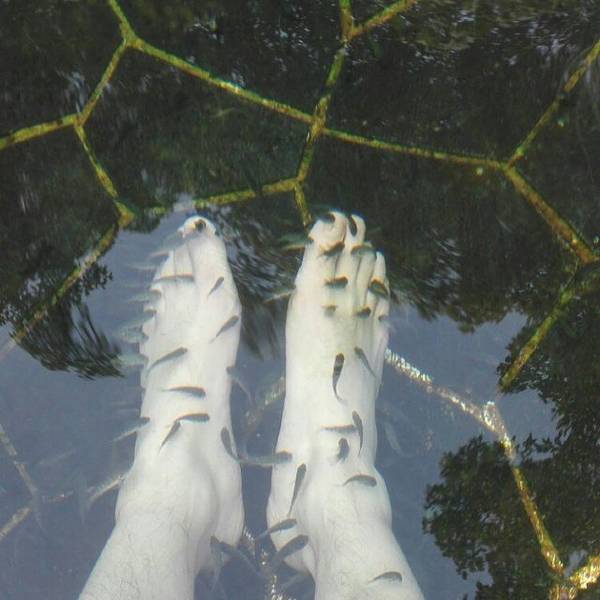 环境不错,汤池也多,周末,人都不算很多,就是鱼疗池的鱼很少