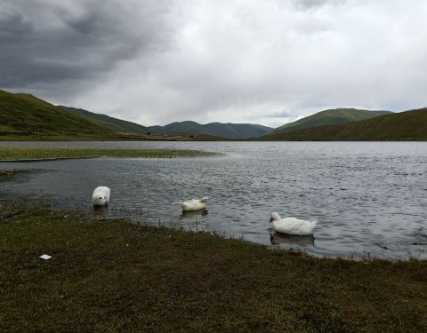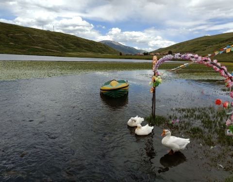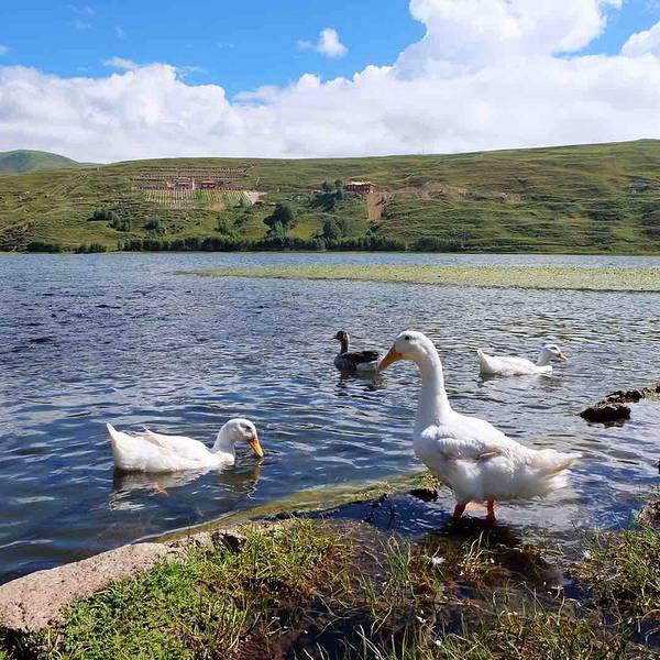 青色的草,蓝色的海,美丽至极,令人陶醉D4: 途径卡萨湖,是川西北路最大的水鸟栖息地,典型的高原淡水 湖泊,是当地有名的圣湖。青色的草,蓝色的海,美丽至极,令人陶醉!
