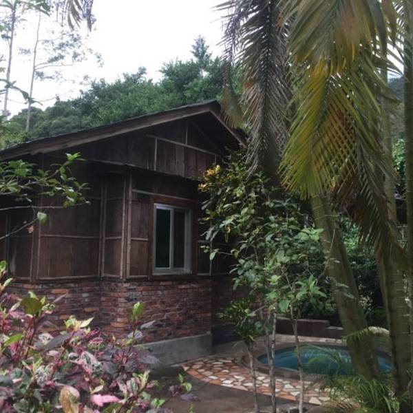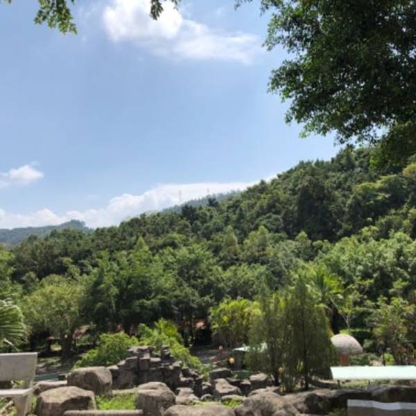 很好山林溫泉,晚上抬頭望明月,樹影婆娑,還有小木屋住