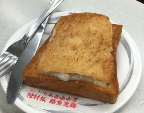 太满意这里是发源地,比较试一下,赤嵌楼这里是台湾第一家哦,就是芝士一样的菜放在吐司里面,里面的...