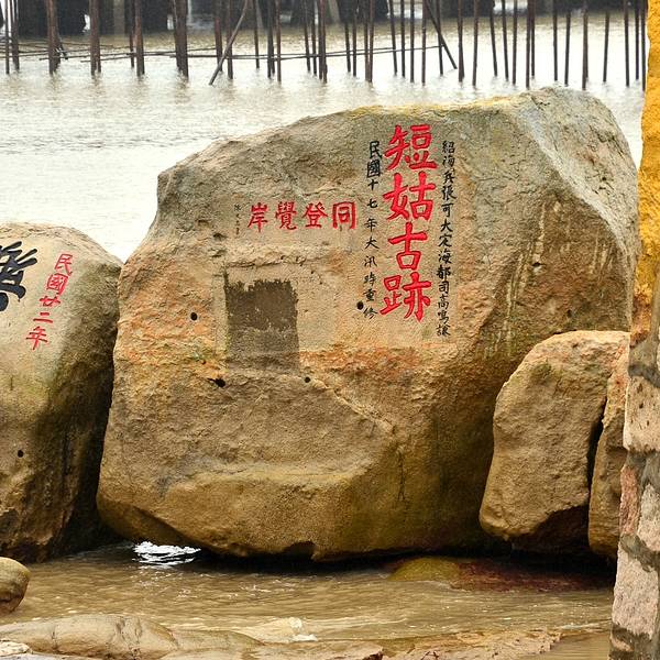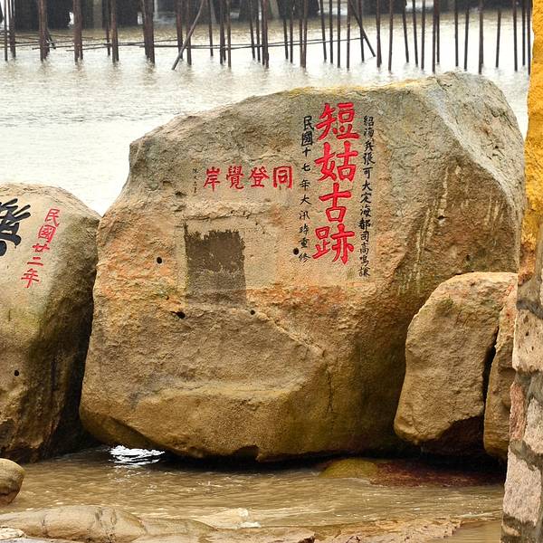 进了佛国山门,往东南约30米处,便是短姑道头。有些石上镌有“短姑古迹”等字样,出没于潮汐浪涛之中,成为旧时的天然船埠。