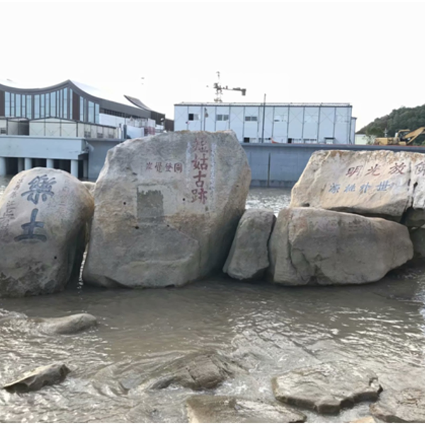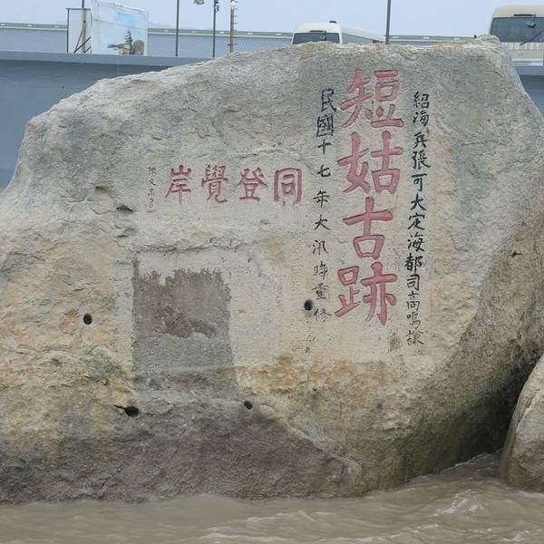此地旧时原为海滩,滩上有“阔十余米,长百来米,小石自相零附,两侧错列巨细不一形状...进了佛国山门,往东南约30米处,便是短姑道头。有些石上镌有“短姑古迹”等字样,出没于潮汐浪涛之中,成为旧时的天然船埠。