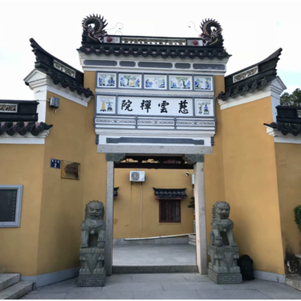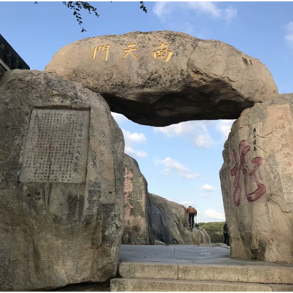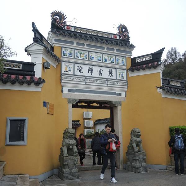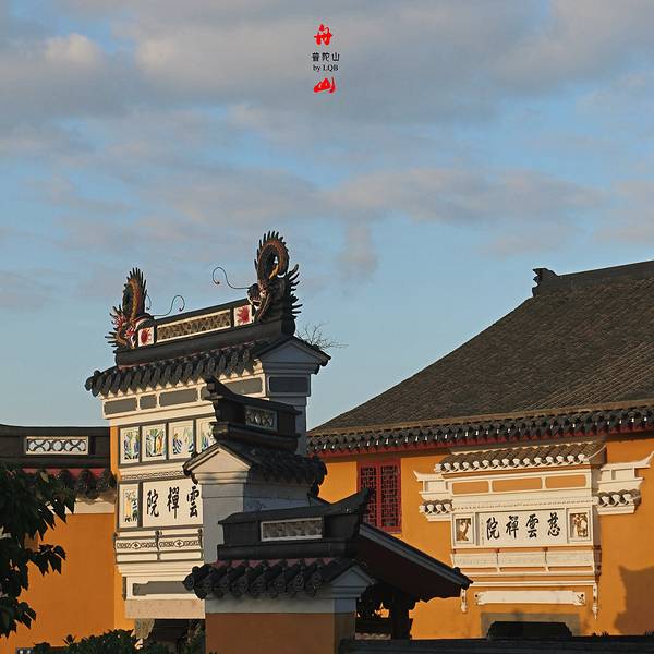 短姑道头北端的一间庵院,庭院南筑女儿墙,临莲花洋。山门额题“慈云禅院”,接着是弥勒韦陀,面海而修,殿宇外敛内放。正殿为“圆通宝殿”,额题“海月潮音”,供奉的是大慈大悲观世音菩萨像,左善财右龙女。迎着夕阳我们继续往前直走,就会看到一个童子虔诚的朝拜着,并面向南海观音左手边就是去往洛迦山码头,沿着海塘边的小路右行,走过一段海堤再拾级而上而下,就会看到一颗枝开茂盛的迎客松再往前走,左手边就可看到一个大石头上刻着“海岸不绝处”继续往前走就可看到南天门正门其实寺庙本身不大,特别之处是庙前的三块巨石组成了门形,南天门也因此得名。南天门是孤悬于海上的,和普陀山岛一水相隔,后来架了一座环形的石桥,因为桥身似龙,故名“环龙桥”。 进了“南天门”,有一座梵宇琳宫,也叫大观蓬。有一尊白玉石雕刻的持莲观音,这座菩萨雕刻的很精美与建于龙湾岗巅高达33米的普陀山标志性建筑。旁边有一块特别巨大的岩石,巨石上有许多摩崖,最引人注目的是康熙年间的题刻“山海大观”。登上岩顶,平坦宽阔,可容十余人安坐。站在平台上,极目远眺,海波如镜,真的是海天一色;东边山梁上的南海观音立像隔水相望,美不胜收。岩顶平台上有一个小水潭,名为“龙眼泉”,有不少硬币被抛入水中,看来是游客祈福用的。站在岩顶可以看到海天茫茫,东南方向可以和南海观音立像隔海相望 。逛完原路返回客栈。