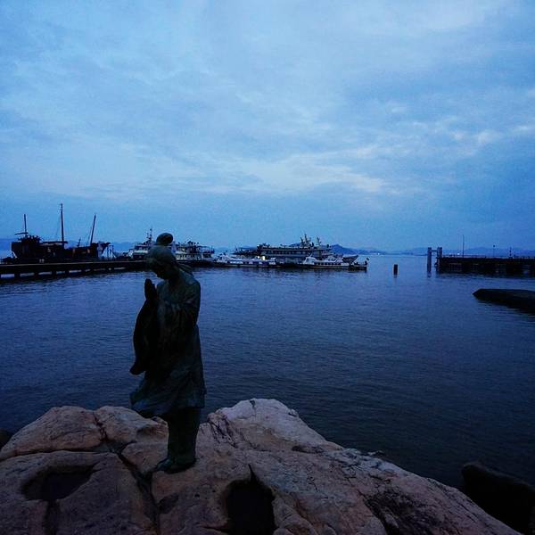以前是普陀山的老码头,在未建普陀山客运码头之前,凡前来普陀山烧香拜佛、揽胜观光的游客,都是由此登岸的最后回岸边,又路过短姑道头,这里晚上没有灯光,今天时间还不算太晚,天还没有完全黑,所以还是可以隐约看见码头的全貌。