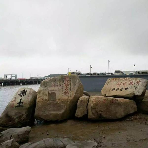 石上多镌有名人雅士之遗墨“短姑古迹”、“慈航普渡”、“道义同皈”、“第一佛国”、“乐土”等14款题刻看着时间还早,我们就想着随便逛逛,于是从普济寺坐到码头,去海边走走。