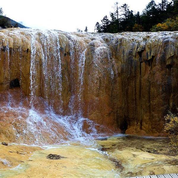 黄龙沟里可看的东西很多,好的风景还在前面。虽然叫洗身洞,实际上游客是不可能进入到洞里洗洗刷刷的虽然叫洗身洞,实际上游客是不可能进入到洞里洗洗刷刷的。有资格进去的只有仙人吧。我们在洗身洞前合了影,就算是洗刷过自己了。黄色的钙化瀑布倒是别处见不到的。黄龙沟里可看的东西很多,好的风景还在前面。