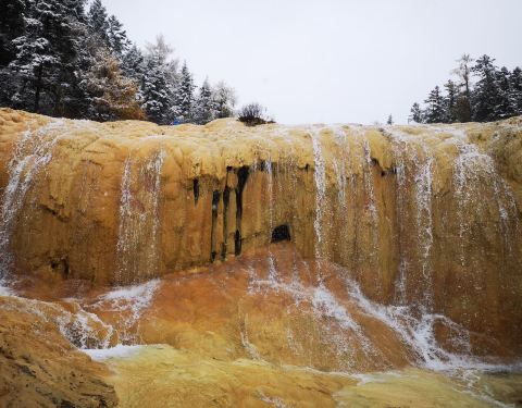 ...十一月的黄龙已经很冷了,上面留下来的水沿着石壁已经冻冰了,洗身洞被掩盖上了很多,但却非常的好看从黄龙景区的最高点五彩池一直往山下走,走到半路就能看到洗身洞,十一月的黄龙已经很冷了,上面留下来的水沿着石壁已经冻冰了,洗身洞被掩盖上了很多,但却非常的好看。