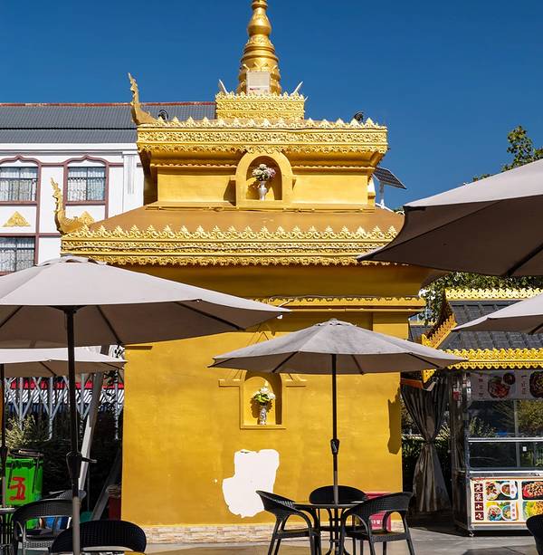 芒市五云寺是滇西小城历史最悠久的南传佛教古刹之一,傣语名“奘罕”,意为“金子寺”,坐落于城区街巷之间,将小城烟火、禅意古建、热带花木、傣家人文完美相融。寺院环境清幽静谧、古朴雅致,没有喧嚣人潮与过...