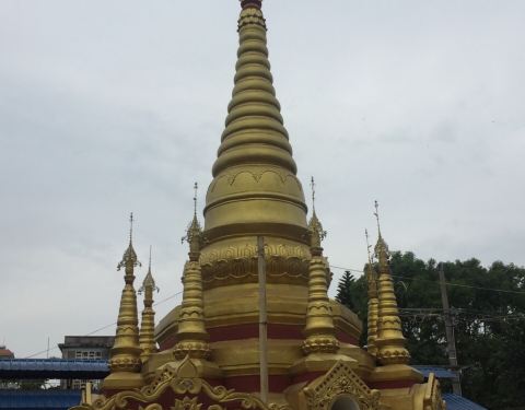 门外有个古井,蛮特别的,还有棵菩提树,走进大门,免门票,右边一个金光闪闪的塔,我也有走进殿内参观。寺附近都是傣家风味餐馆。