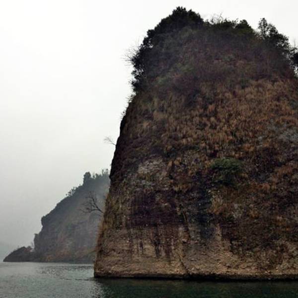 一看到有船经过,就招手示意靠岸登船,船费也特别便宜,一段大概1、2元。当时正是雨季,江水涨得厉害,有些低洼的田地都被淹了,江水十分浑浊。两岸的山水风光在阴雨天下显得不太美,只能当游“船河”了。游览了凌津滩大坝、兴隆街码头与市场、柳林汊、穿石山、延溪。
