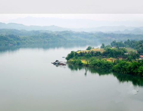 一看到有船经过,就招手示意靠岸登船,船费也特别便宜,一段大概1、2元。当时正是雨季,江水涨得厉害,有些低洼的田地都被淹了,江水十分浑浊。两岸的山水风光在阴雨天下显得不太美,只能当游“船河”了。游览了...