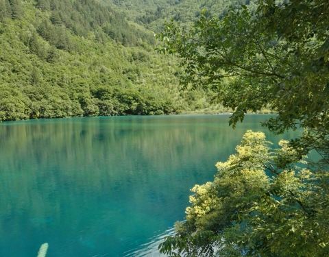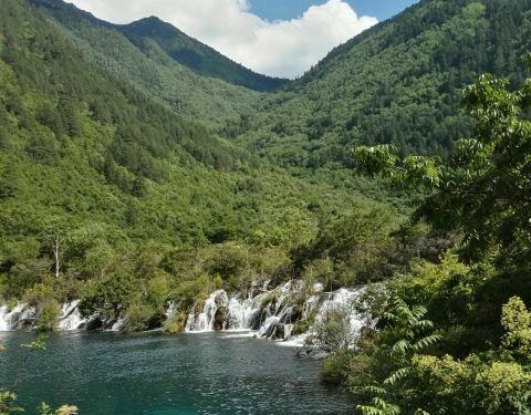 北岸的尽头是芦苇丛,南岸出口有森林和瀑布,中间就是一大片是蓝得醉人的湖面,非常适合拍照犀牛海是九寨沟内的第二大海子,在海子内有游船出租,是九寨沟内水上活动的重要场所。北岸的尽头是芦苇丛,南岸出口有森林和瀑布,中间就是一大片是蓝得醉人的湖面,非常适合拍照。