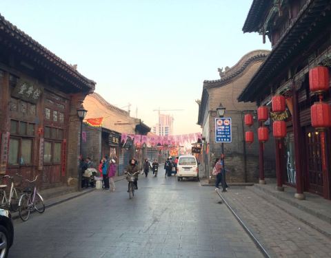 - 街巷不大,但建筑特色明显,中间有四屋角楼对称分布,现也有商户,人少,不过不挤。也无法与平遥古城比