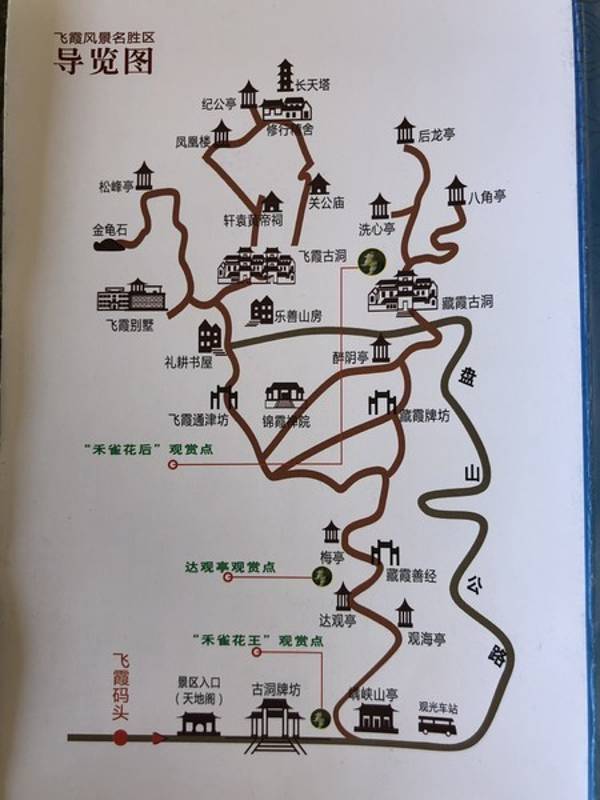 可以一边放松心情徒步,一边欣赏江河风光在网上找了个路线图给你们参考参考下船后直奔飞霞山景区的主题——游览各大祠庙禅院