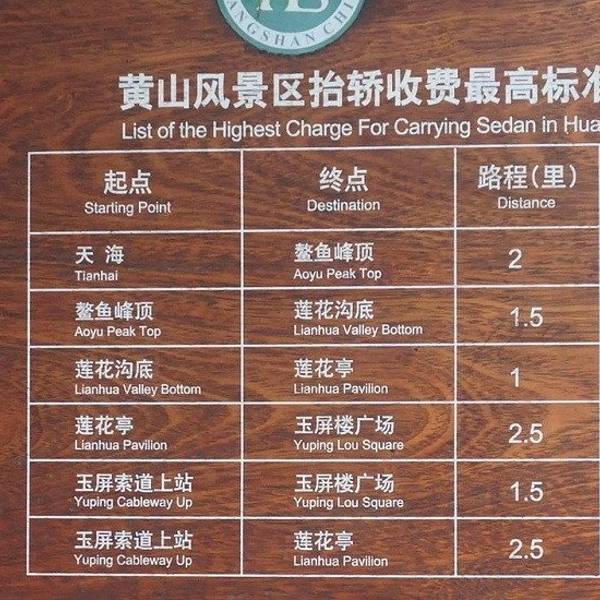 景区建议高峰时走此路,但风景自然不如鳌鱼峰方向的老路了。路边的轿运价格表路边的轿运价格表。9点17分到达岔路口,右转为鳌鱼新道,可避开鳌鱼洞和一线天,在鳌鱼洞下方与主游道汇合。景区建议高峰时走此路,但风景自然不如鳌鱼峰方向的老路了。9点20分到达鳌鱼峰,上去拍拍照。