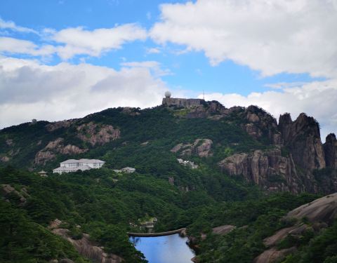 无论前山后山上来一般都会路过这里。天海景区就是白云宾馆这一带,从鳌鱼峰或者光明顶可以鸟瞰全貌天海景区就是白云宾馆这一带,从鳌鱼峰或者光明顶可以鸟瞰全貌。这里黄山景区的中间位置。无论前山后山上来一般都会路过这里。 白云宾馆前面有一片较大的平坦区域,所以有很多餐饮店,可以在这里休息补给。