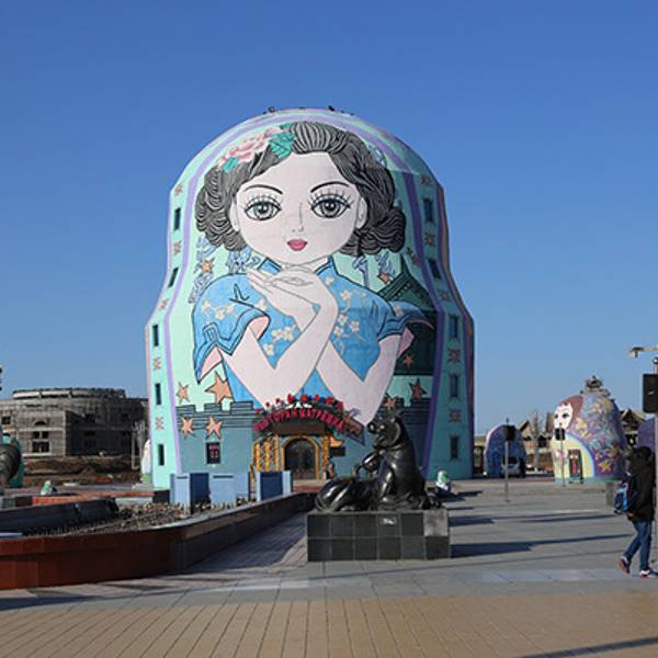 主体建筑是一个高约30米的大套娃,据说是目前世界上最大的套娃。套娃外部彩绘由代表着中俄蒙三国的美丽女孩组成,主体套娃内部为俄式餐厅和演艺大厅。如今的套娃广场已经打造成一个集游乐园、餐饮、酒店与一体的大型主题乐园。更有点像俄罗斯风情的“迪士尼乐园”,也非常适合亲子游玩和拍照。 展开