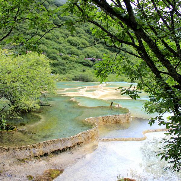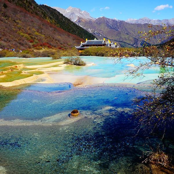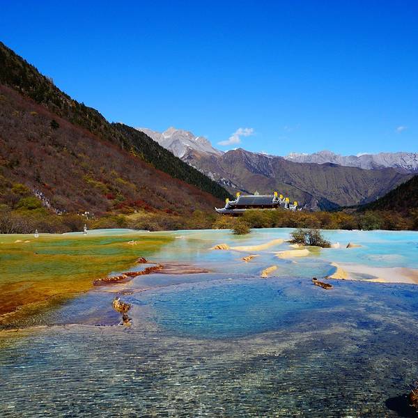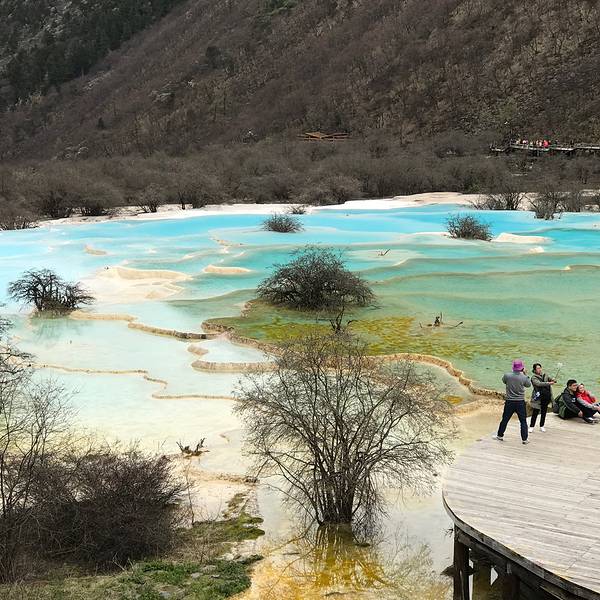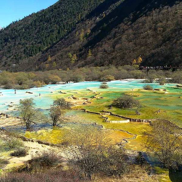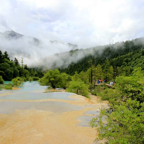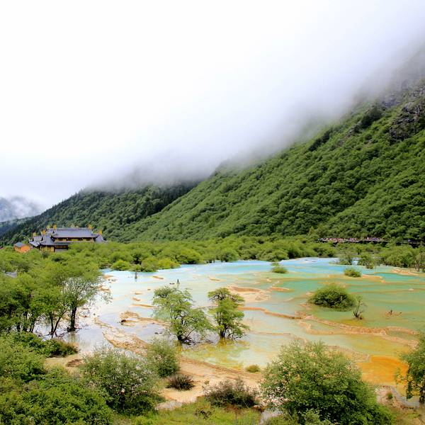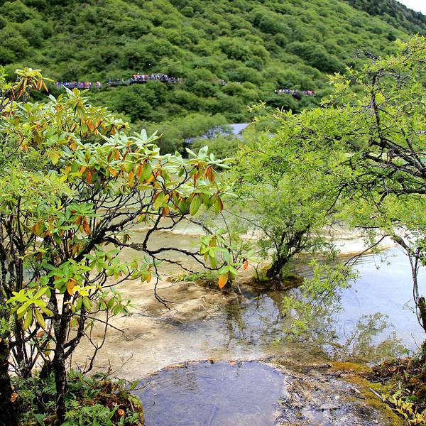 转花池距五彩池约10米,面积4平方米,藏匿在高山灌木群的绿荫之中,池水清澈见底。数股泉水从地下涌出,在池面形成无数的波纹,若有人向池中投入鲜花、树叶,它们便会随着不同节奏的涟漪朝不同的方向旋转起来,十分奇异的,偶然又会有两朵鲜花合上了同样的节奏,朝着相同的方向旋转在一起,其原因至今未明。“黄龙庙会”期间,时有青年男女来此投花、投币,以占卜爱情的成败,把转花池围得水泄不通,十分热闹。