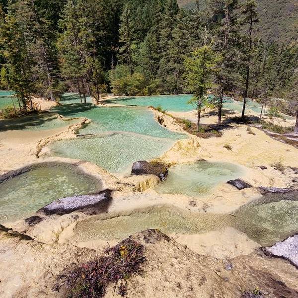 ...,就到了相对核心的景点,这张照片是我在黄龙的唯一还算正常的照片了,因为又走了几步,就高反厉害了不到一个小时,就飞到黄龙机场了。据说坐地面交通得六七个小时,吓退了。飞机上看到的雪山说实在的的,一下飞机,就头痛。以为是没睡好,其实是高反了,但是还能撑住,就是自己不说,其他人看不出来。坐公交车,...不到一个小时,就飞到黄龙机场了。据说坐地面交通得六七个小时,吓退了。飞机上看到的雪山说实在的的,一下飞机,就头痛。以为是没睡好,其实是高反了,但是还能撑住,就是自己不说,其他人看不出来。坐公交车,去黄龙景区,在松藩县,熟悉红军长征的同学应该知道,爬雪山过草地的地方。其实那个季节,还不到丰水期,景色没有那么壮观,海拨还高,完全可以不去黄龙。但是中国有名老话,来都来了。在黄龙没费什么体力,因为是缆车上下,但是费了我的元气。下索道,走一小段,就到了相对核心的景点,这张照片是我在黄龙的唯一还算正常的照片了,因为又走了几步,就高反厉害了。坐在路边哇哇吐。路边有卖瓶装氧气的,不贵,15块钱1瓶。我还见有人斜挎着像枕头一样的东西,当时不知道是什么,后来明白那是氧。休息会,继续缓慢前行。路上有人往下走看见我,说你别上去了。我很纳闷,难道他们看见我吐了?不应该呀。小张说,你的脸上写满了高反。我拍了张自拍,是了,难受挂满了脸。包括往下走的时候,还有人主动给我吃的,唉。