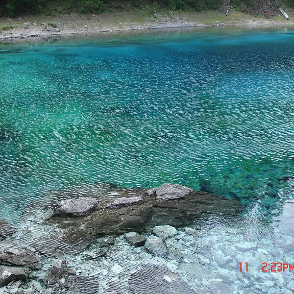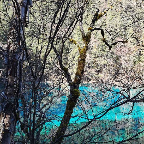 九寨最小却最艳丽的海子;阳光的照耀下,拍照在不同的角度有不同的色彩。
