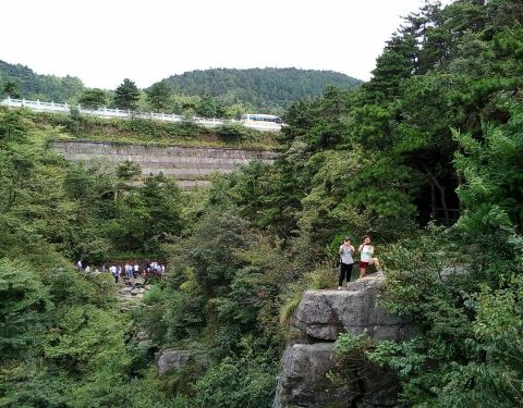 庐山天桥在锦绣谷内,是两块石头在合适的角度拍摄,好像一座石桥断掉了庐山天桥在锦绣谷内,是两块石头在合适的角度拍摄,好像一座石桥断掉了。感觉是在凑景,因为那个角度并不好找,不是一下子就可以看到的。