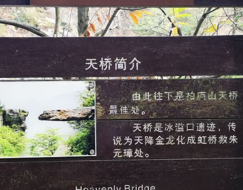 突然天降金龙化作虹桥,朱兵马刚刚过桥脱险,刹时晴天霹雳巨响,龙飞桥断,就此留下天桥奇观如琴湖往下走,有个调度中心。倘若驴友们有需要帮助,就去那吧。