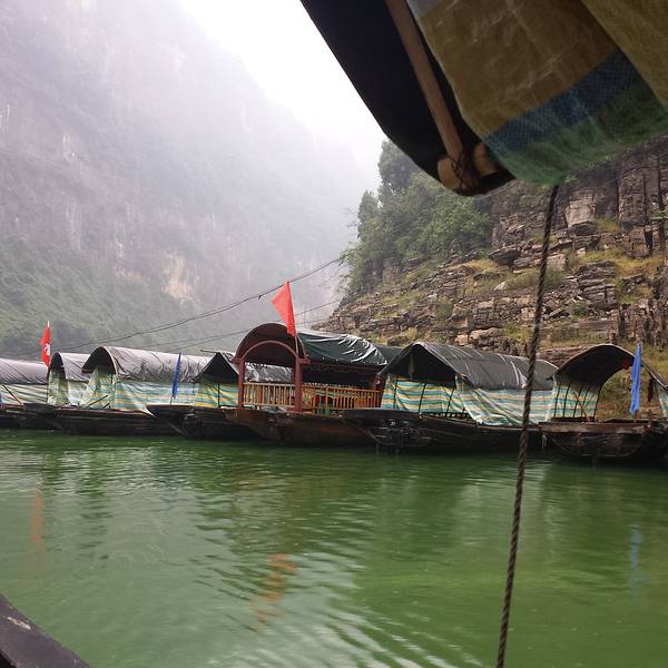 进入小小山峡后开始换乘40一人的乌篷船,船工一开始很热情,又是唱歌又是烘托气氛,行到一般开始诉苦哭穷,推销30元一个的钥匙扣,有强迫的意思,但是坚持不买也没办法。说实话,小小三峡没啥特色,上船就是为了推销产品。