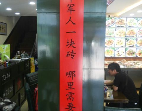 齐齐哈尔景新街上的老兵食堂,实际上就是地道的东北菜馆。风格别具。菜量大,品种多,明天就餐人都蛮多的
