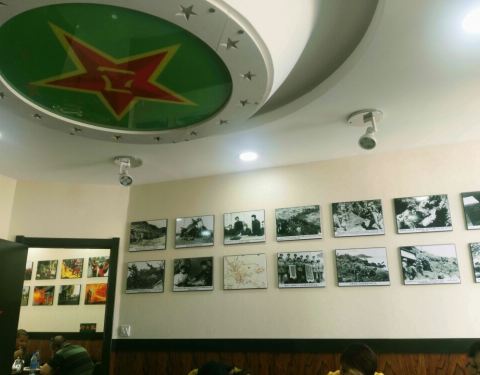 齐齐哈尔景新街上的老兵食堂,实际上就是地道的东北菜馆。食堂里面用我军各个时期的老照片来装饰。风格别具。菜量大,品种多,明天就餐人都蛮多的。