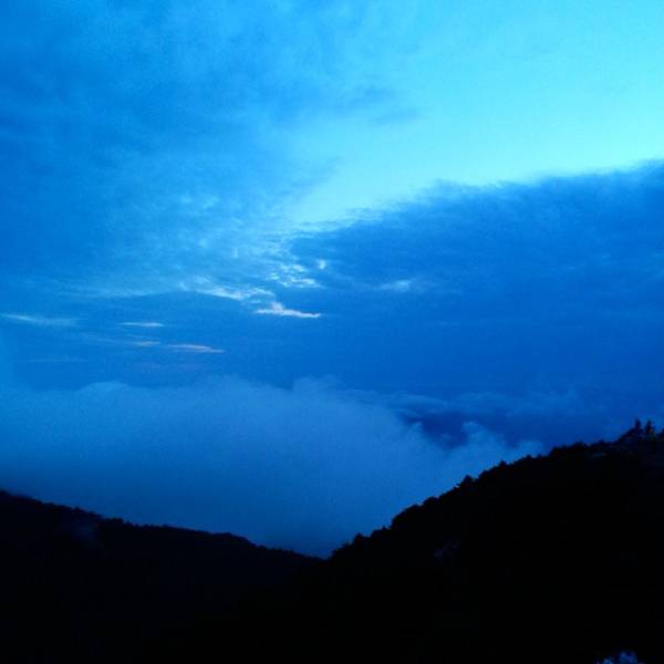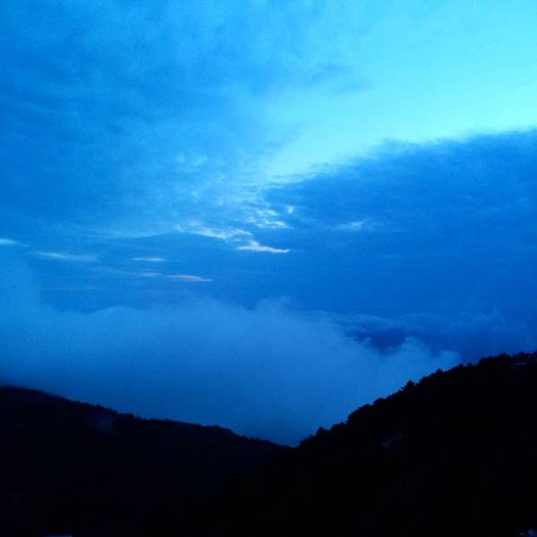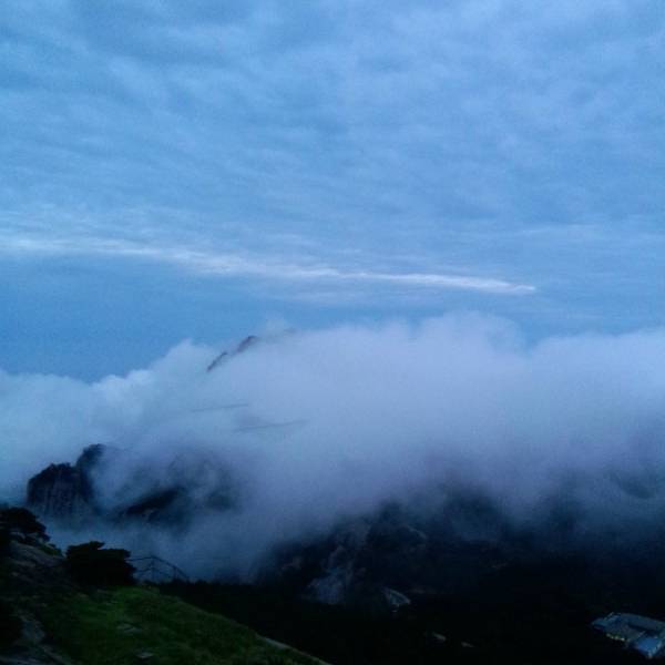不过还是不亏的,因为留下来了,所以傍晚就在外面转悠,下午的时候出现了云海。真的超美!!天蓝的像是蓝水晶一样清澈,云海一点点从山谷里涌上来,由远及近的,优浅变浓的渐渐向我 靠拢来,最后翻腾着盖过了山涧,你感觉自己好像坠入到棉花里,有种腾云驾雾的感觉。