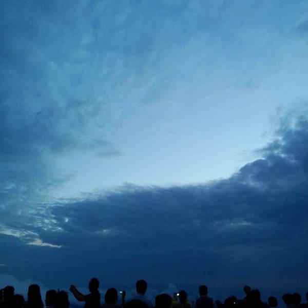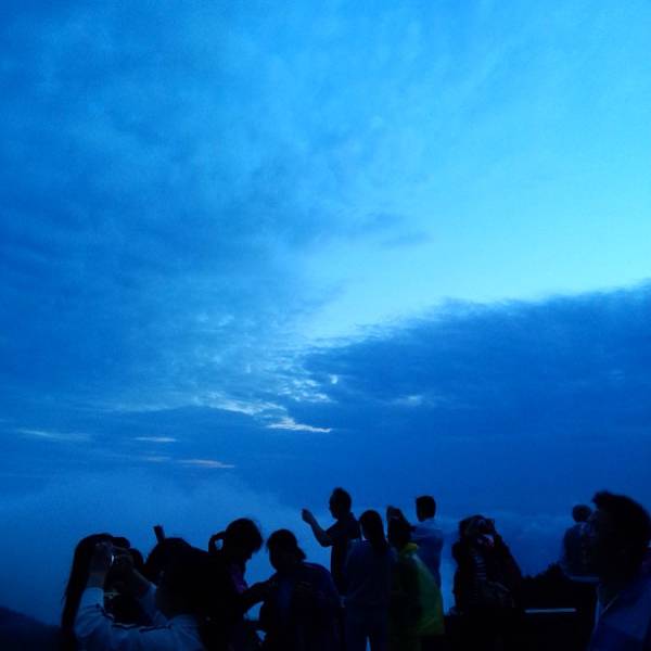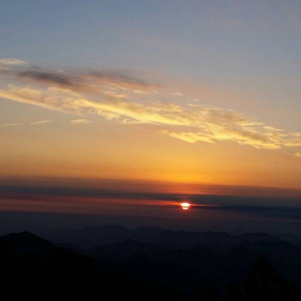 后来早上起来,因为山里早上冷得很,就直接裹着被子出去等着。你会看到看台上挤满了人。等了很久,因为天气原因就只看到了一点点。但是还是超激动的。相信我,在海拔八千多米的山上,没有城市的空气阻挡的山上看日出绝对和你平时看的不一样。实在是美炸了。很清澈,触及到灵魂的美丽。