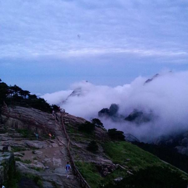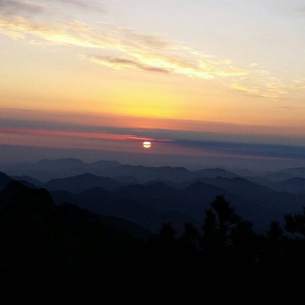 一直以来每到一地总想看尽人间的日落和日出,这次去黄山主要去看了日落,当太阳沿着地平线慢慢下沉的时候,天边的彩霞慢慢消失在天际的时候,世界就开始安静下来,周边的所有的一切声响都可以让你感觉不到,眼睛里只有大地的沉寂和寒冷了。所有我很喜欢登高和看天空色彩的变化。