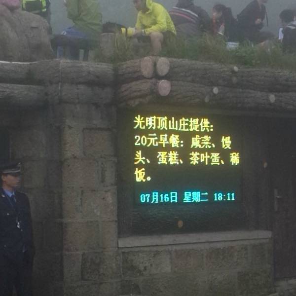 3.光明顶上有播报天气的和预告第二天看到日出的几率。