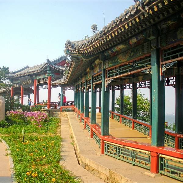 枣升吉祥➡鹰角亭➡伟人观海➡鹰角岩➡望海长廊➡朗月阁➡清风亭➡浴日亭➡浪淘沙浴场➡鸽子广场➡碧湖樱花➡青莲池➡景区出口