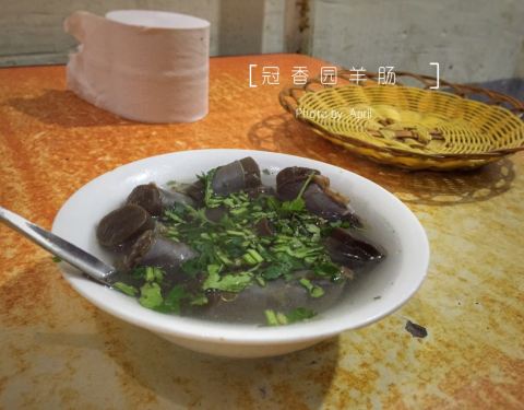 冠香园羊肠子是德州名小吃。 每天晚上出摊,就在路边放那么一辆小车,做羊肠子的小车周边永远人头攒动,一幅热闹非凡的样子。 羊肠子是德州特有的小吃,其他地方虽然也有各种羊肠子的烹饪方法,但德州做法与他...冠香园羊肠子是德州名小吃。 每天晚上出摊,就在路边放那么一辆小车,做羊肠子的小车周边永远人头攒动,一幅热闹非凡的样子。 羊肠子是德州特有的小吃,其他地方虽然也有各种羊肠子的烹饪方法,但德州做法与他们有很大区别。将羊血灌入肠衣,羊肠子和汤里加入独门配方,就是一碗美美的羊肠子,分肥瘦,根据自己喜好可要求老板是否加肥的。 一碗羊肠子搭配烧饼或油饼,美妙非凡! 后两者均为1元/个,个人喜欢烧饼。 羊肠子小碗5元大碗7元,还可以加量要10元的。 好吃不贵!